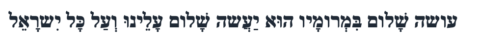 May the one who makes peace in the Heavens bring peace upon us and all Israel.